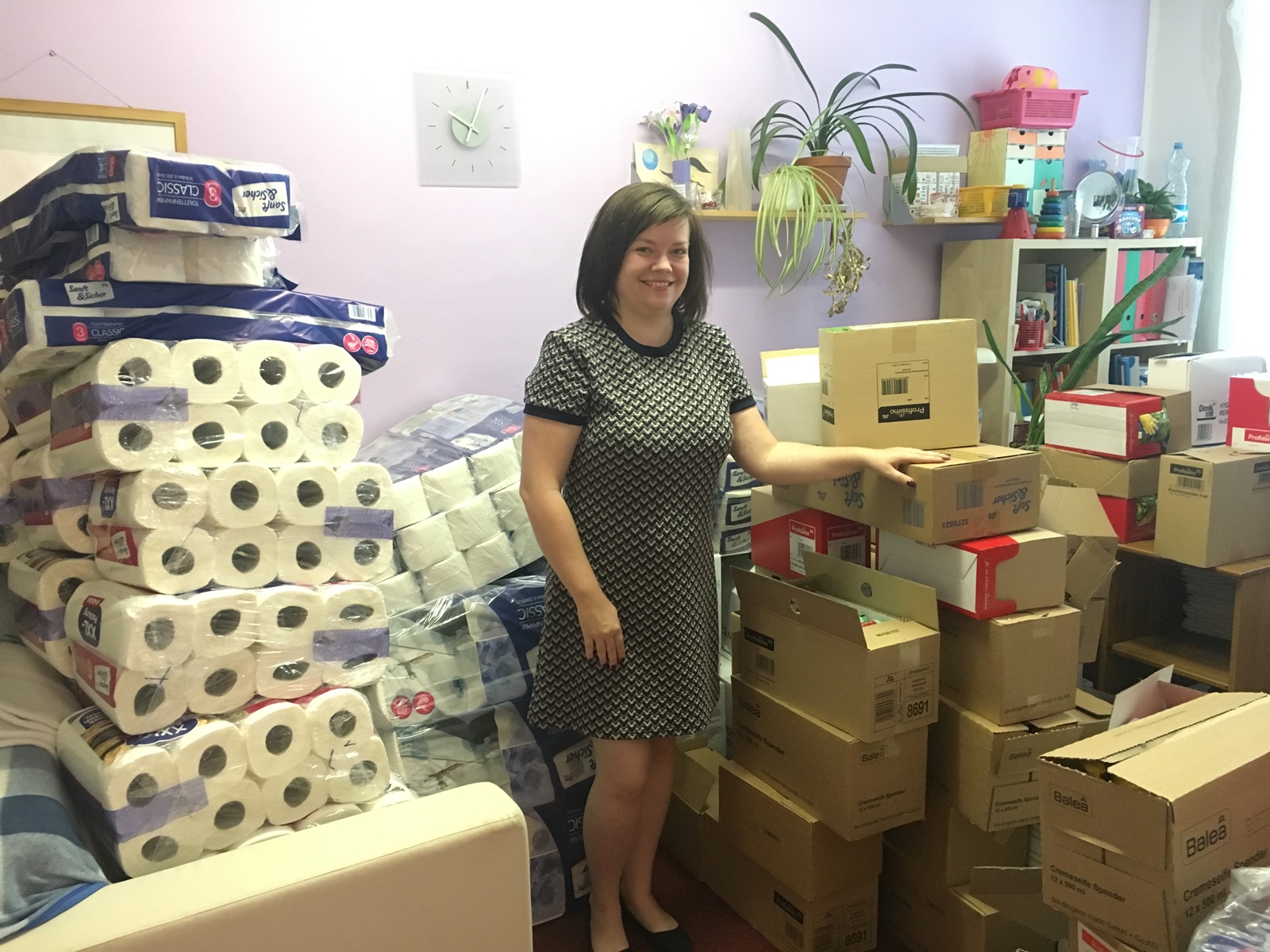 Darovací šek za společnost dm drogerie markt předala paní manažerka Zuzana Kozáková.